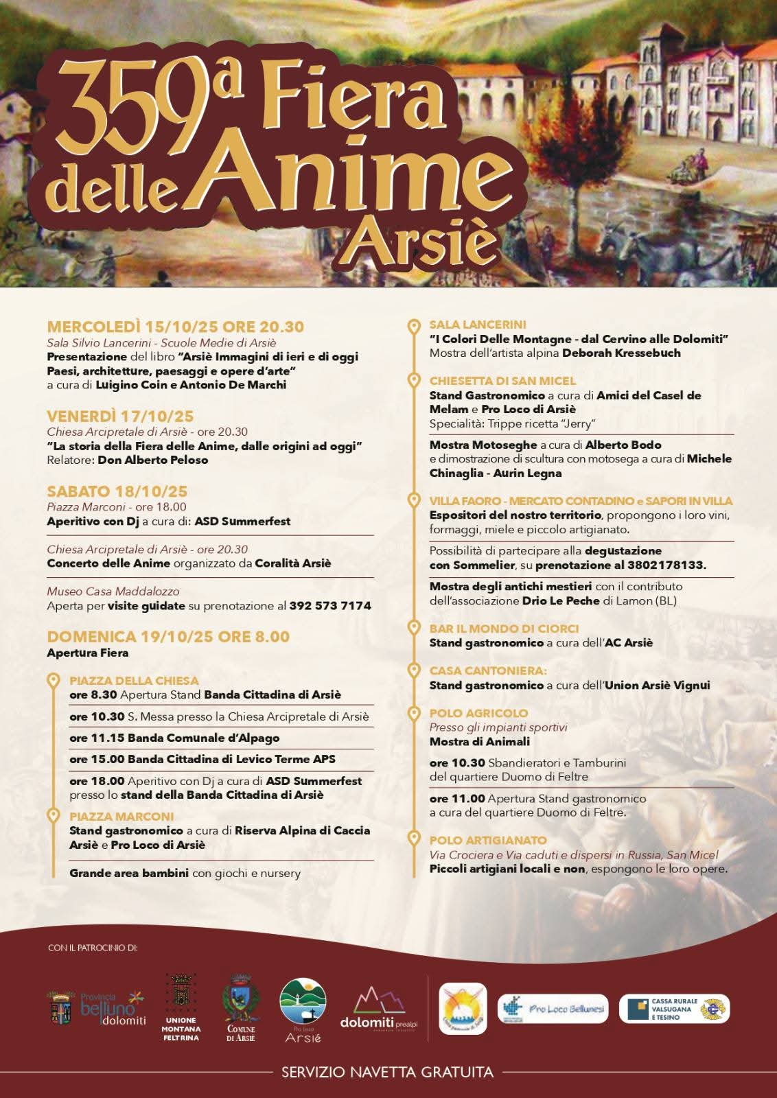 Arsiè – Domenica 19 Ottobre : 359^ Fiera delle Anime